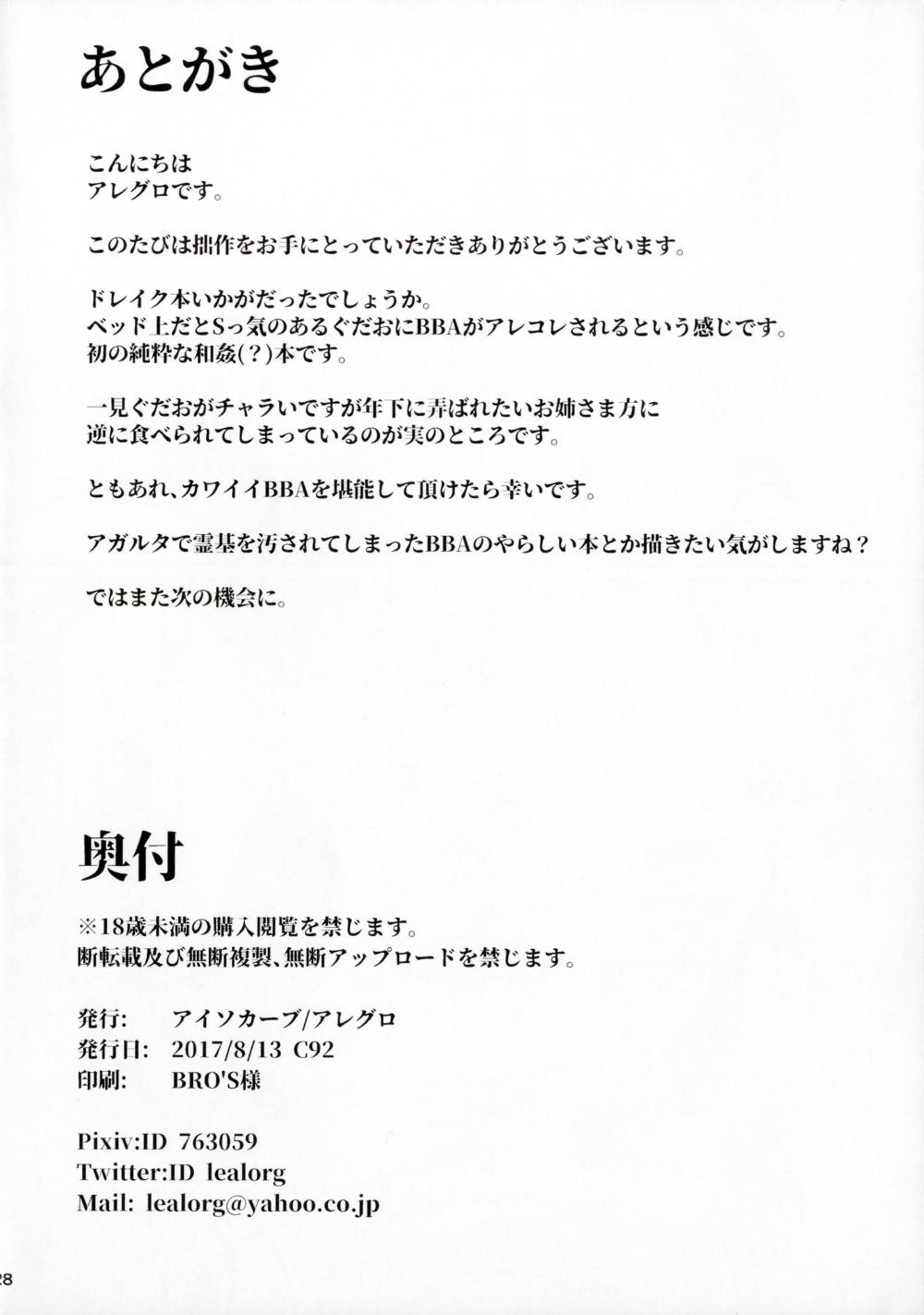 2017年夏コミ(C92)