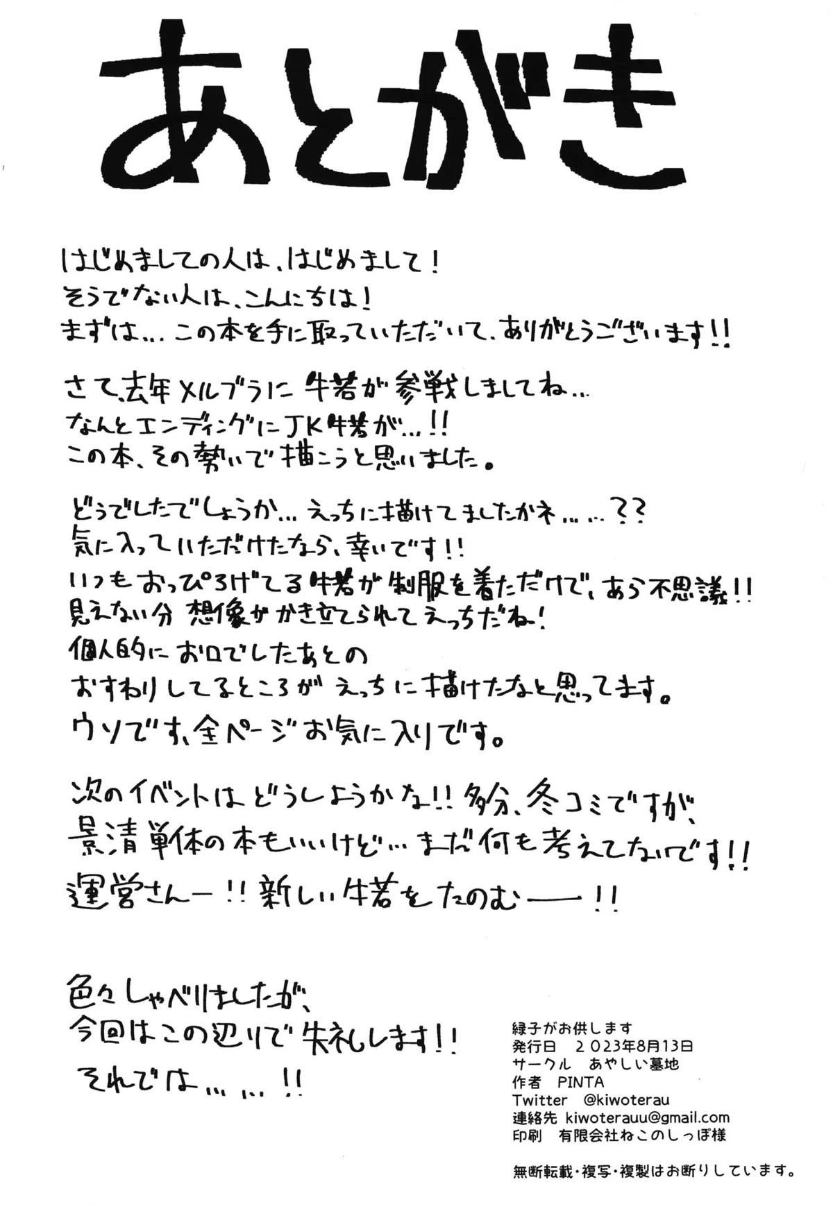 牛若亭 + C97あやしい墓地会場限定おまけペーパー