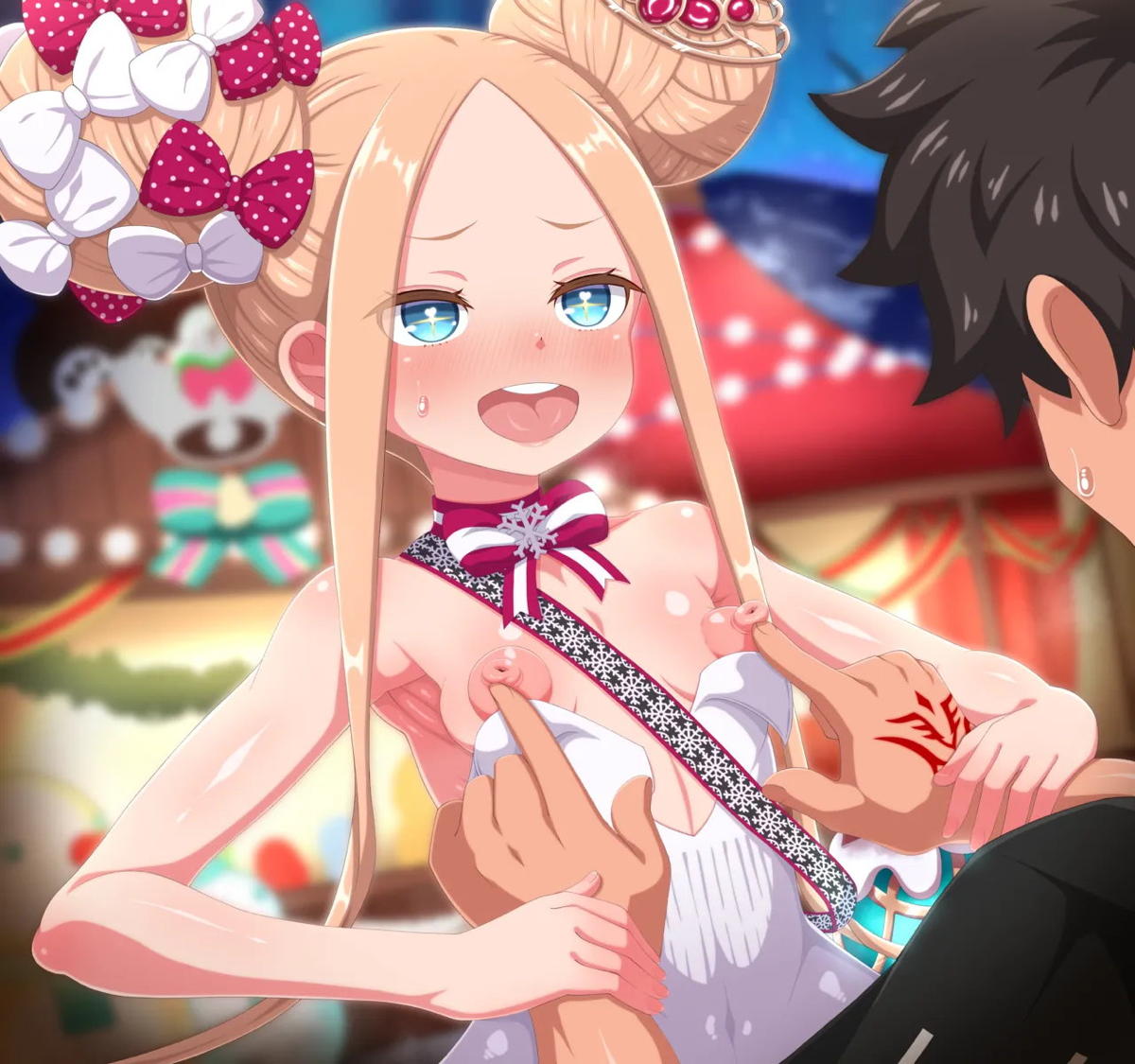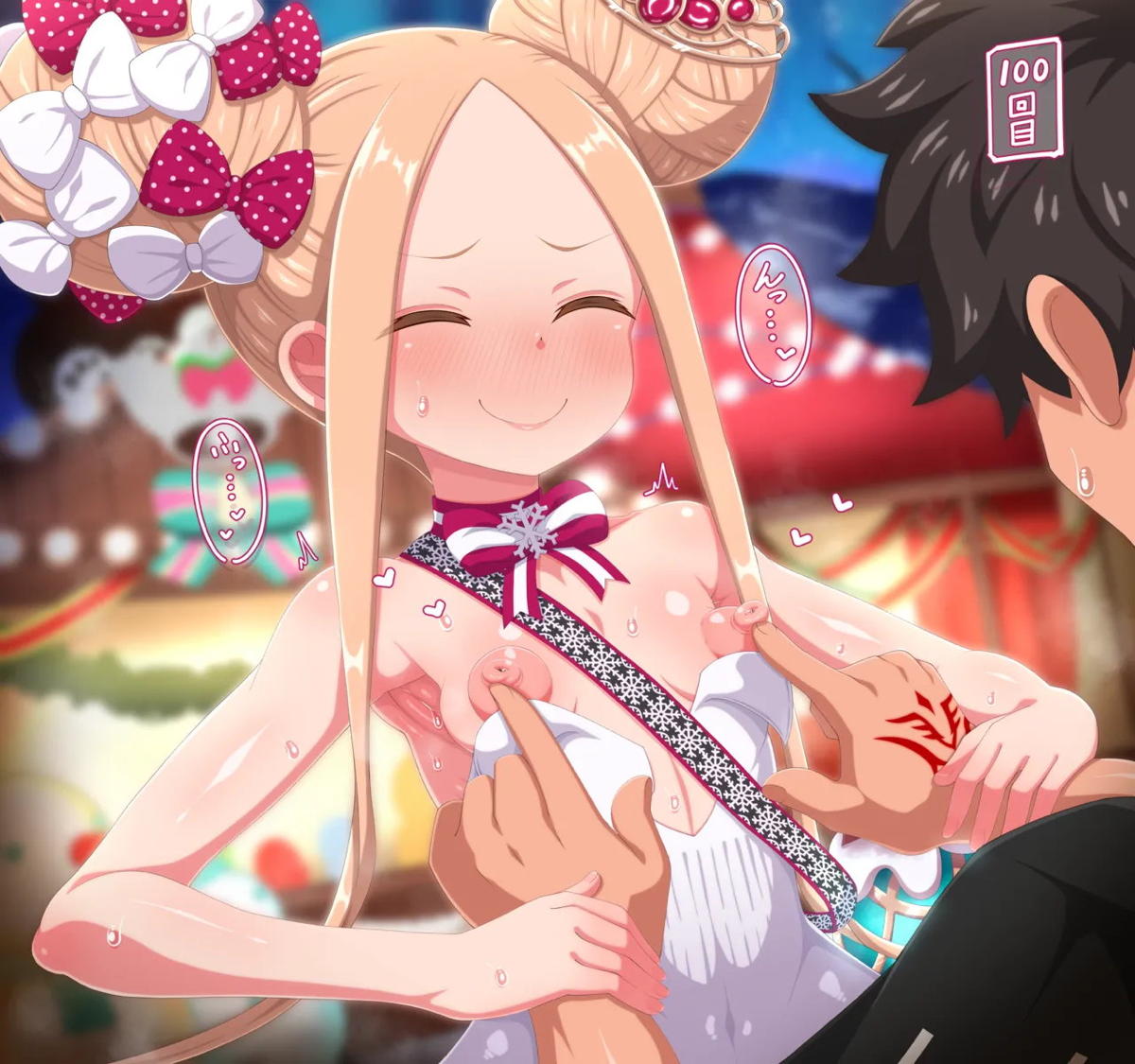 乳首を弄られて噴乳しちゃうサンタアビーちゃん
